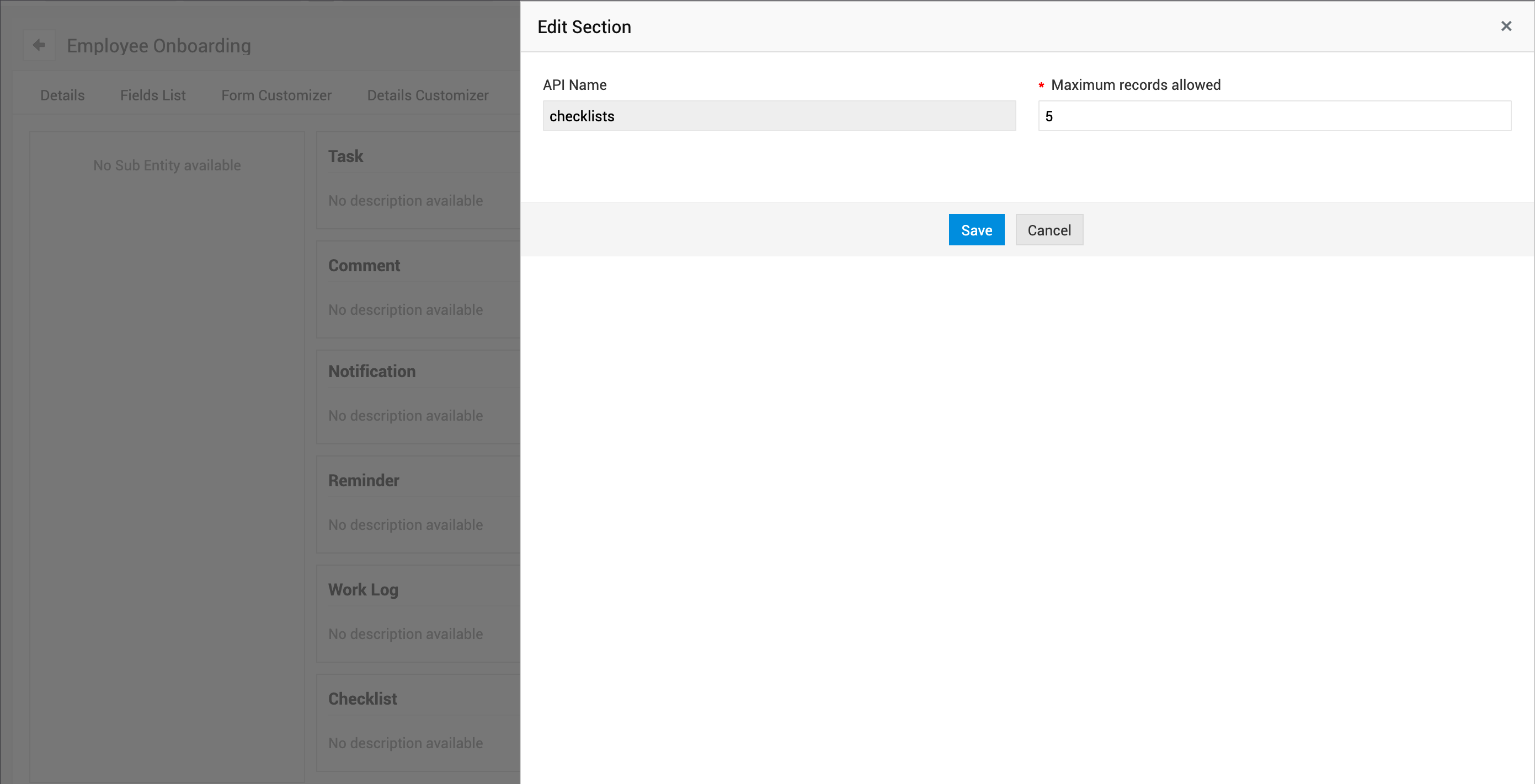 | 允许的最大记录数 | 设置可与记录关联的清单最大数量。 |