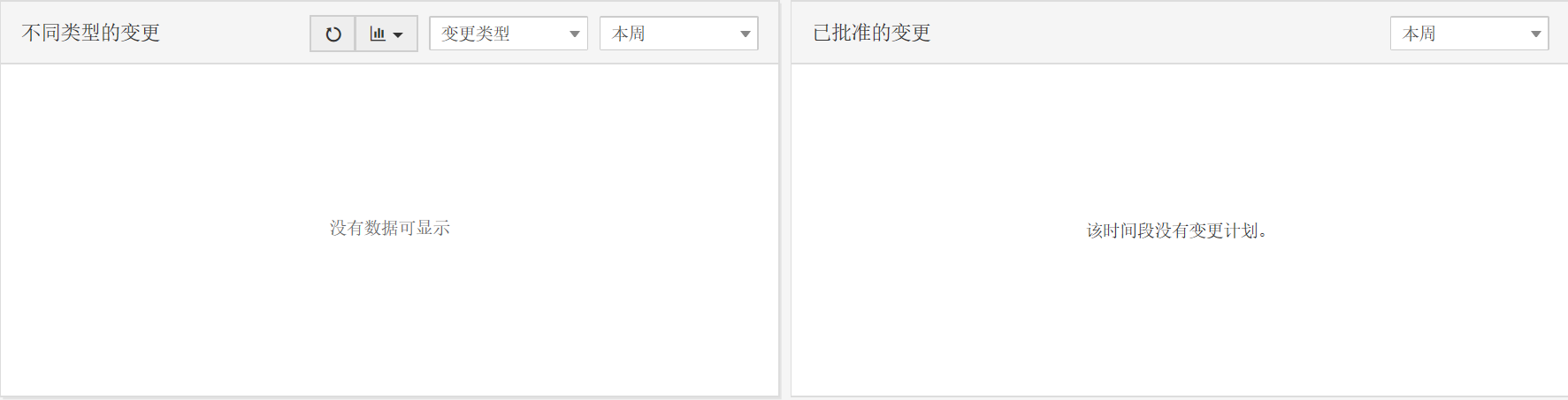 仪表板中的第一个窗口显示了不同类型的变更。您可以从下拉框中选择时间(本周、下周、本月等等)查看时间段的变更。还可以根据变更类型、优先级、紧急度和影响等标准查看变更。
