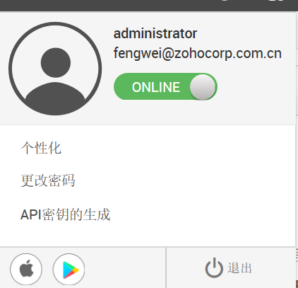选择个性化。将出现个性化页面,包含三个选项,分别是个性化、修改密码、生成API密钥。
