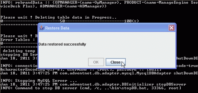 恢复数据前,请关闭ManageEngine ServiceDesk Plus。