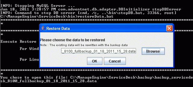 C:\ManageEngine\ServiceDesk\bin\restoreData.bat