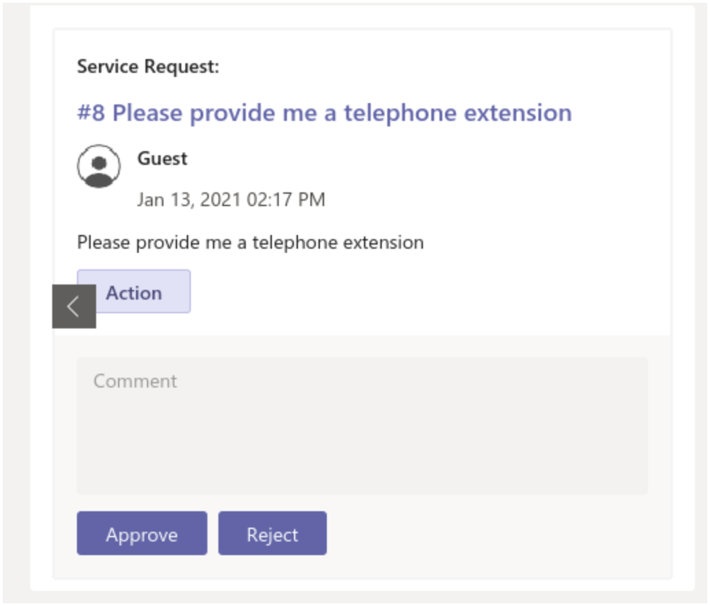 您可以在 teams 应用中直接对 ServiceDesk Plus 中的请求或变更执行批准/拒绝操作。为此,