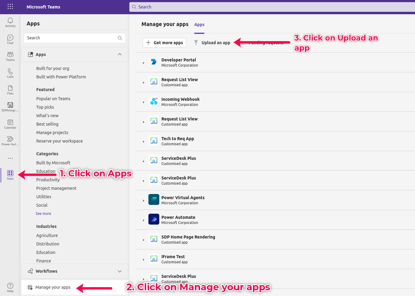 要设置 Microsoft Teams 集成,您需要在 ServiceDesk Plus 的集成设置、Microsoft Teams 桌面版或 Web 应用以及 Azure 门户中进行操作。请确保您可以使用以下角色访问所有这些区域:
