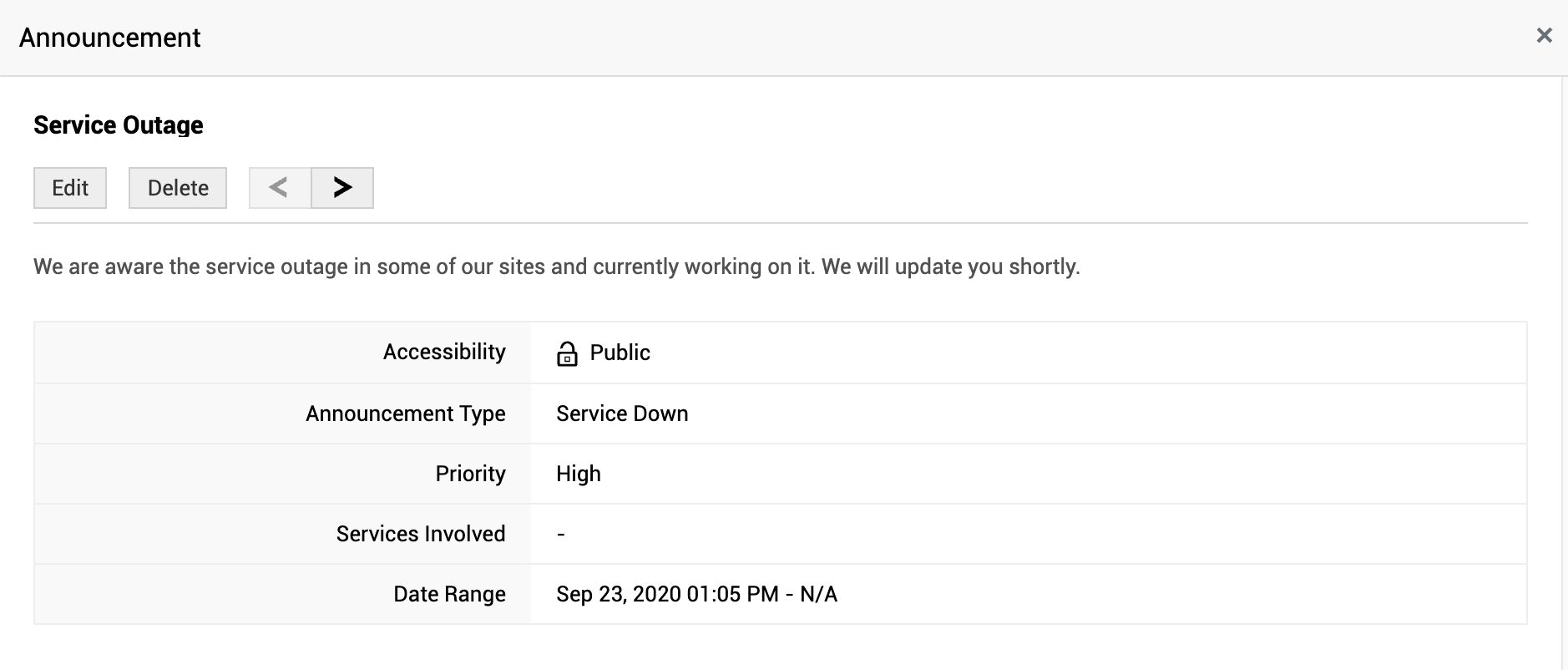 要编辑公告,请在公告详细信息弹出窗口中单击“编辑”,进行必要的更改,然后单击“更新”。