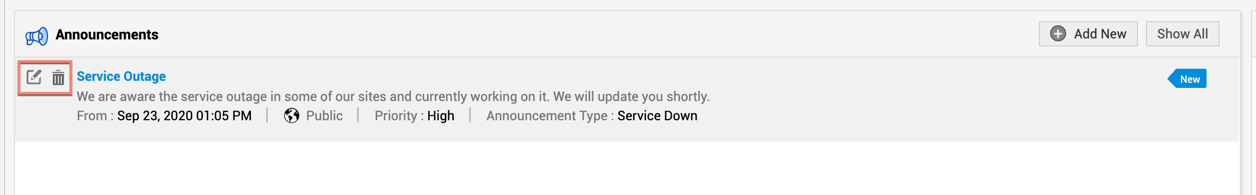 或者,您也可以在小组件或列表视图中,单击公告对应的适当图标来编辑或删除公告。