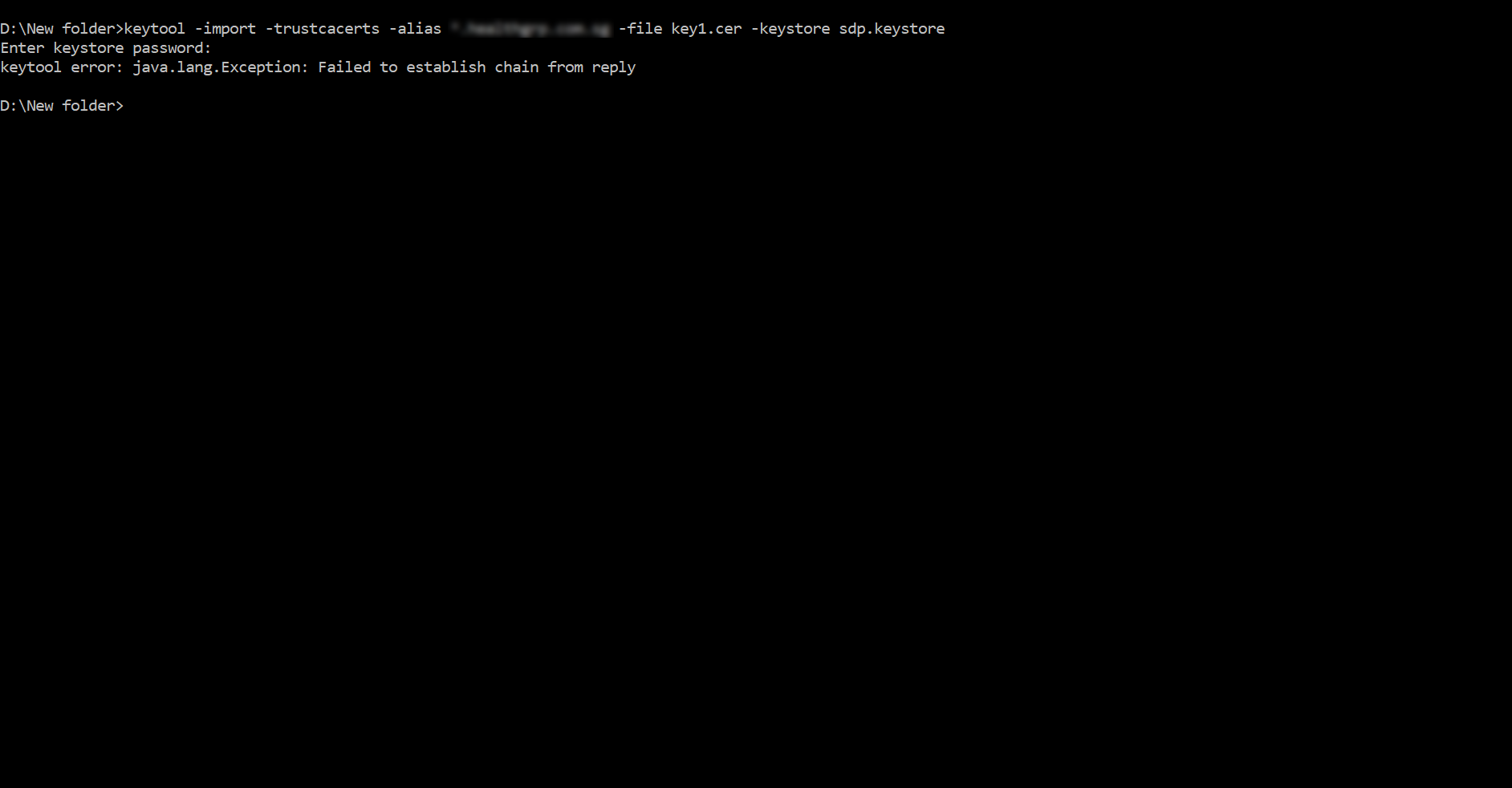 keytool -import -trustcacerts -alias <your_alias_name or [Domain Name]> -file your_domain_name.crt -keystore sdp.keystore