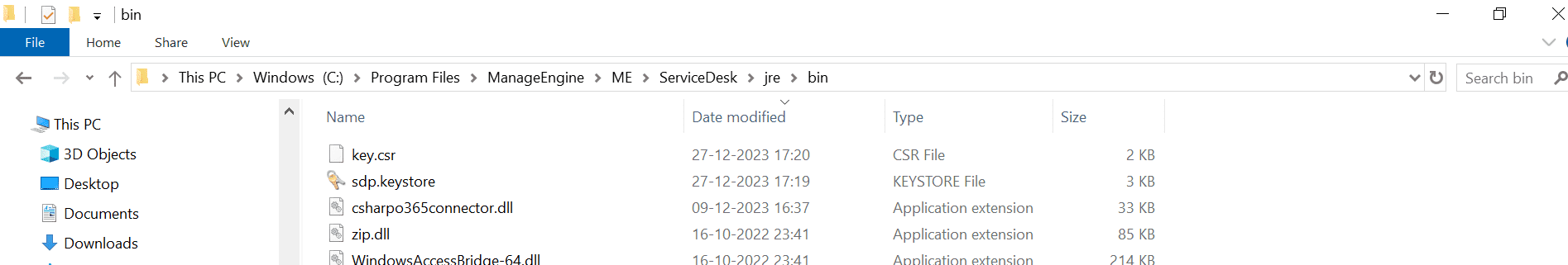 sdp.keystore 和 key.csr 文件将创建在 <SDP-home>/jre/bin 文件夹下。