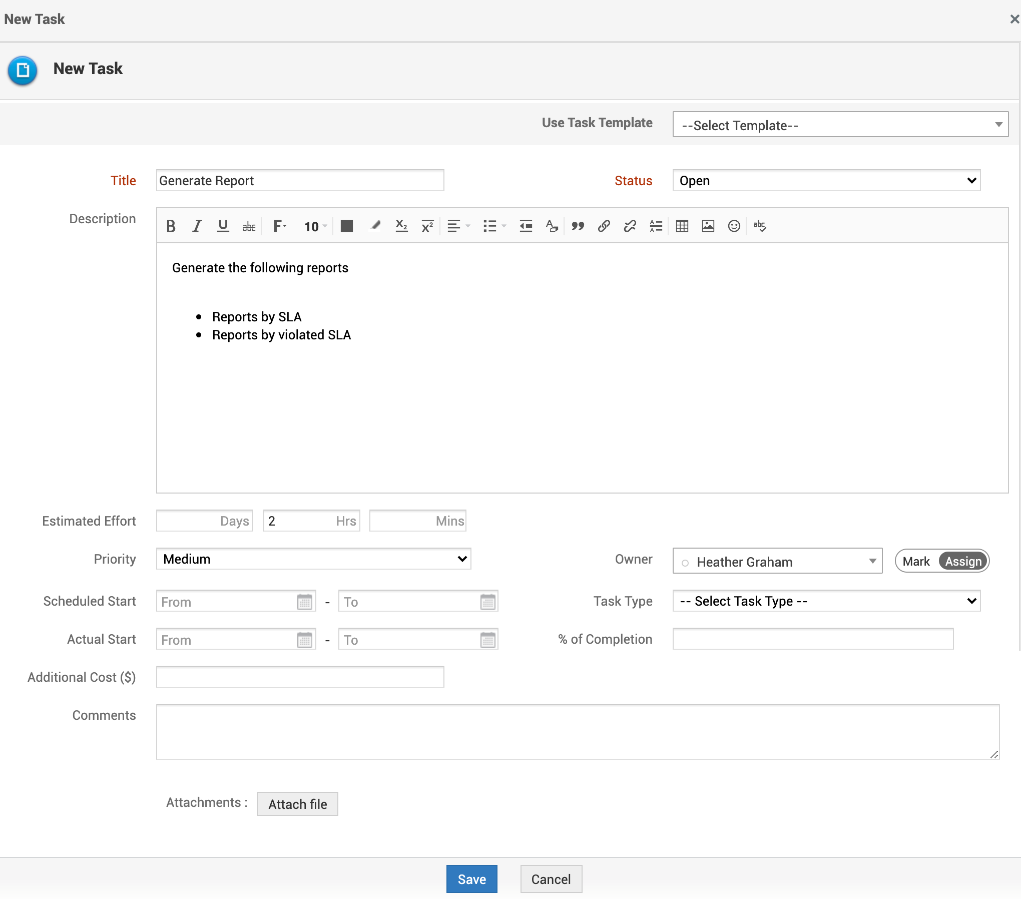 如果您不想使用任务模板,请在给定文本字段中指定任务标题。这是必填字段。