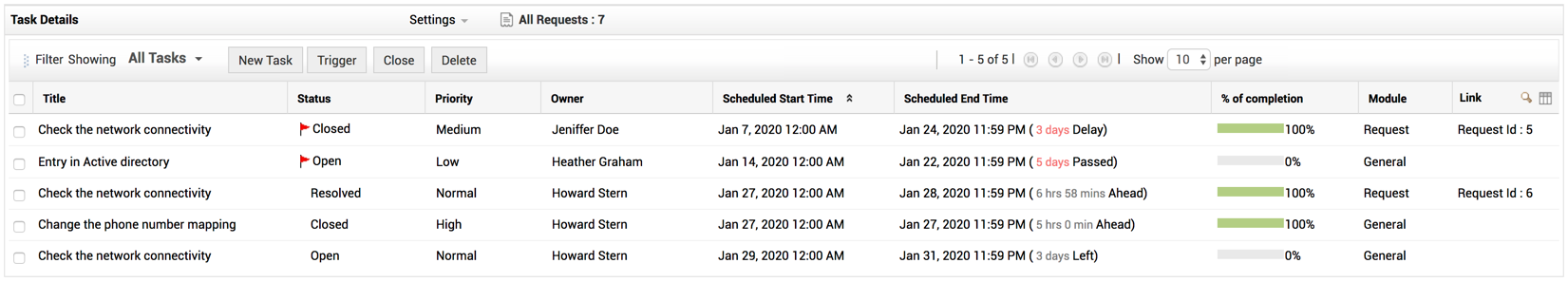 您也可以通过此选项将任务分配给其他技术人员。将任务添加给其他技术人员后,这些任务会列在他们主页的“我的任务”块下,技术人员登录 ServiceDesk Plus application后即可立即查看这些任务。