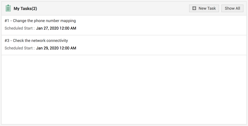 保存这些值。您可以看到新增的任务会显示在主页的“我的任务”块下,如下所示。任务将根据计划开始时间按升序显示在任务选项卡下。