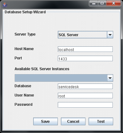 ServiceDesk 目前不支持SQL服务器实例,在以后的版本中将实现。若知道机器名和指定实例的端口,也可以连接SQL服务器SQL服务器指定实例。
