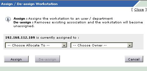 要重新关联,选择你想从新关联的用户名或者部门名称并点击指派。工作站列表页面就会被刷新,在指派列中用户名或部门名称被显示。