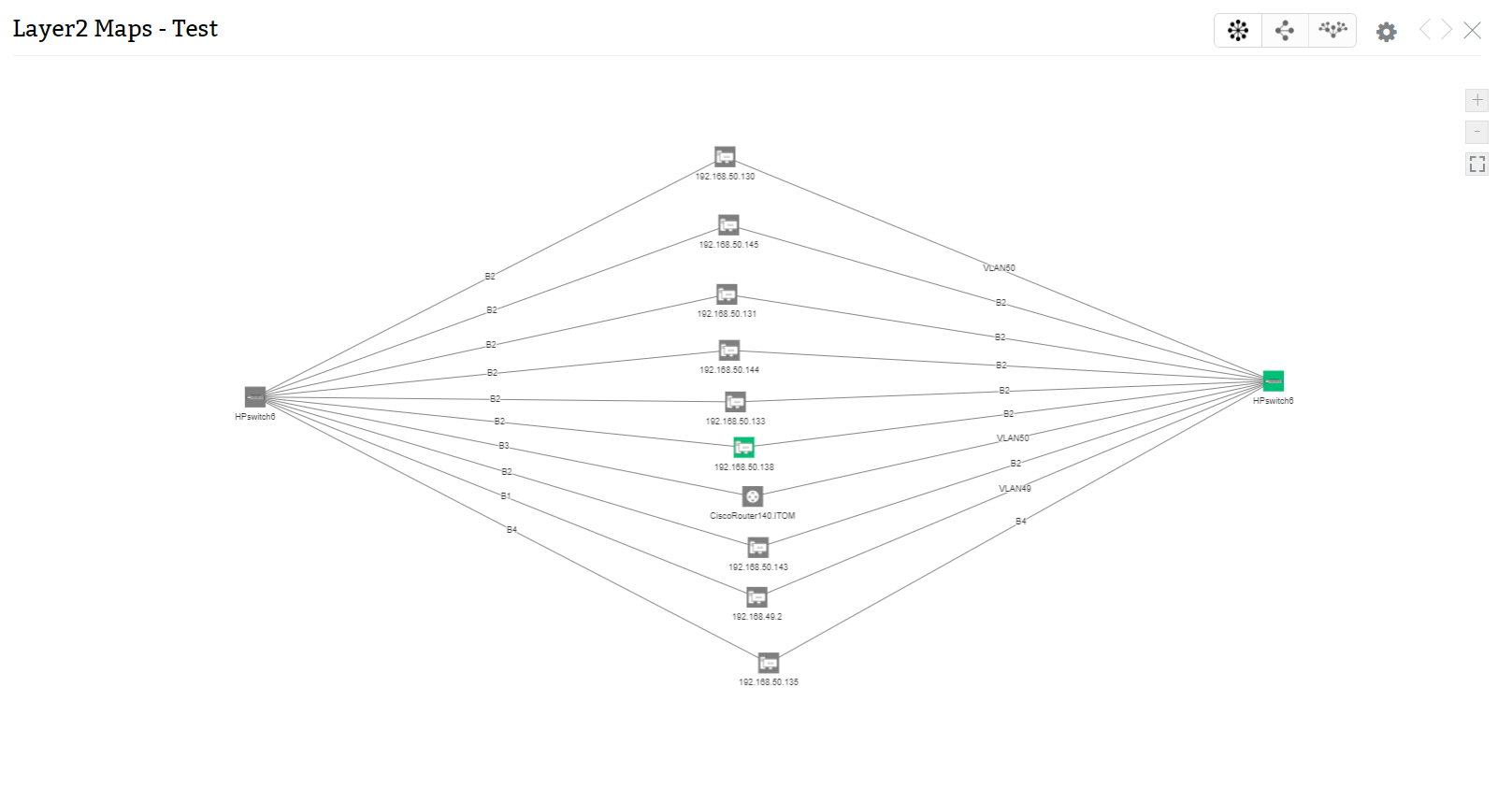 例如,在 Layer2 地图中,HP 交换机与工作站(192.158.50.130)之间的关系将自动填充到 CMDB 下这两个 CI(HP 交换机和 192.158.50.130)的关系图中。
