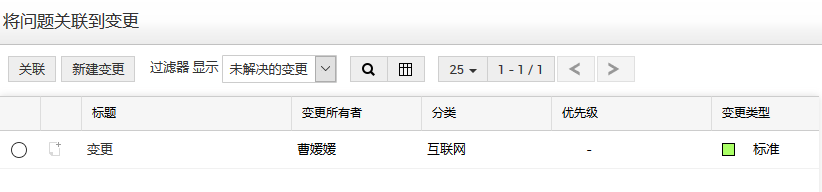 点击关联按钮,将对应的变更与问题进行关联。