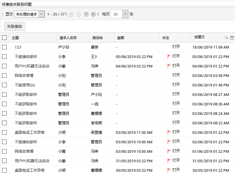 点击关联,关联所选的请求到问题。关联的事件将列在问题明细页面中的事件页签下,如下图所示: