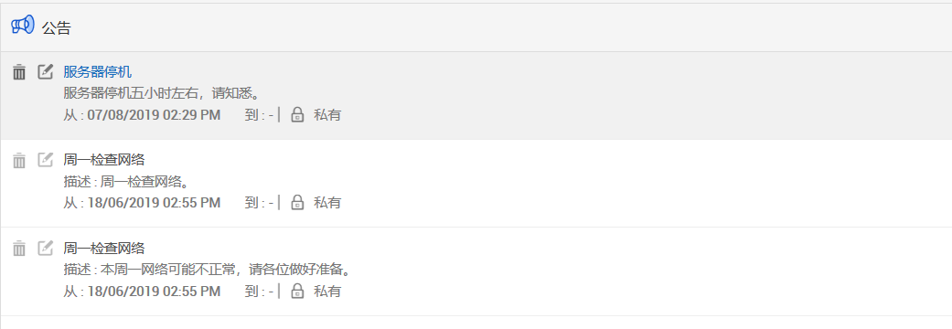 最近的公告按照时间顺序显示。点击全部显示,即可查看所有公告。