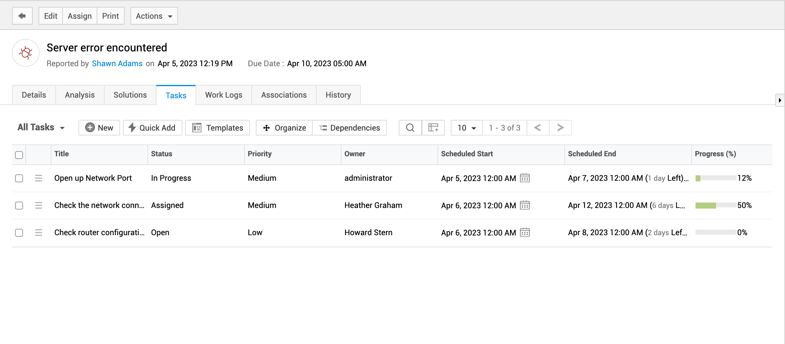 任务 - 在问题请求中添加任务,以便由不同技术人员分担相关工作。了解更多。