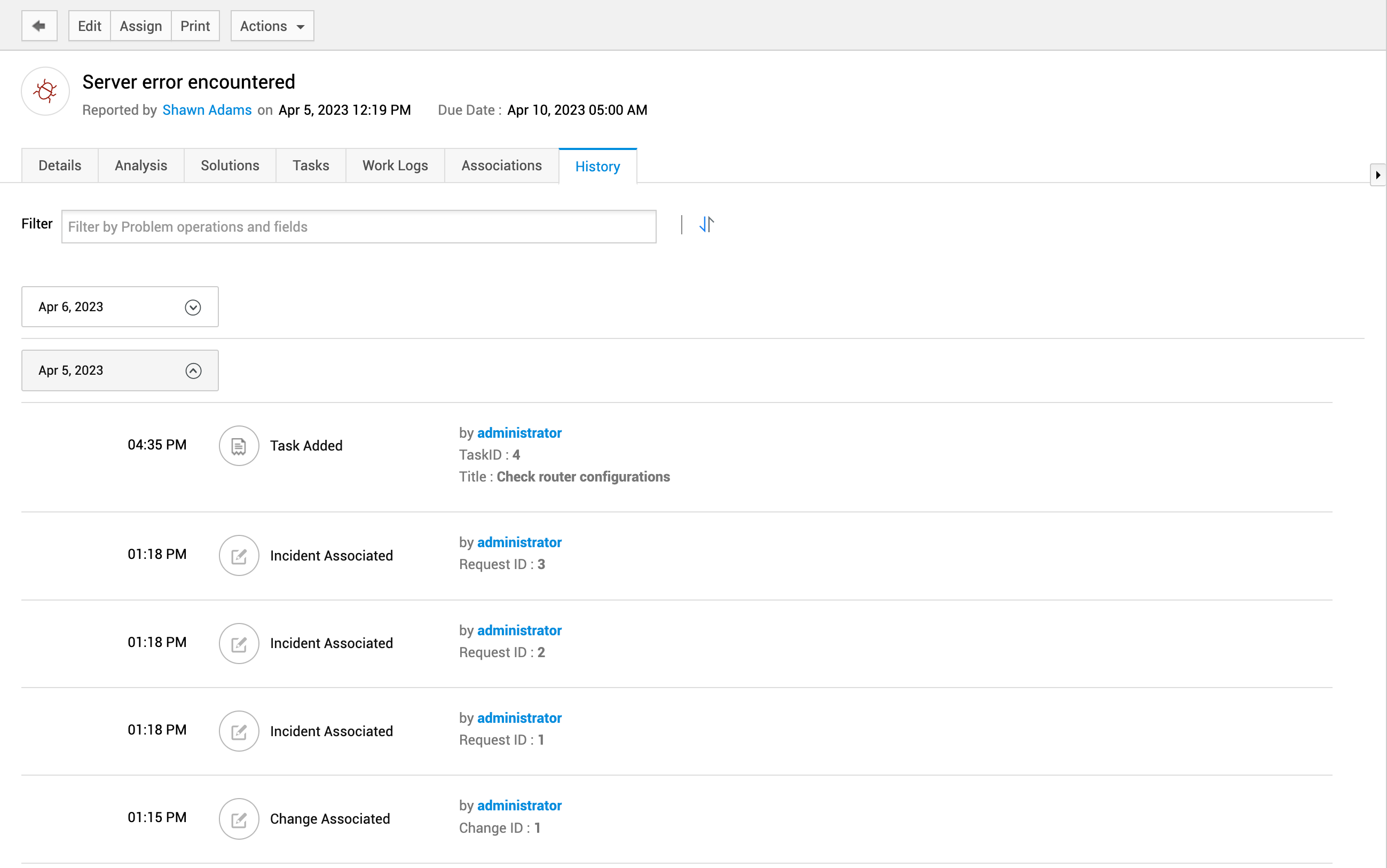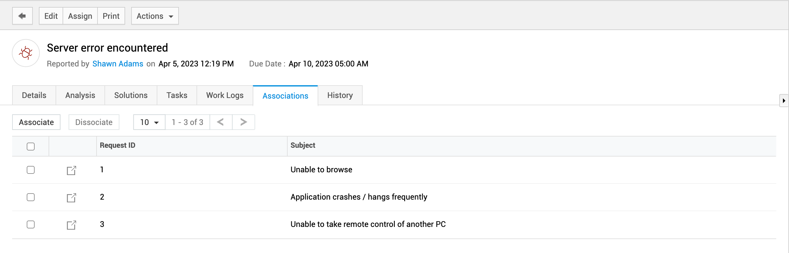 关联 - 查看与该问题关联的所有事件。您还可以从右侧窗格将变更请求附加到问题请求或从中分离。