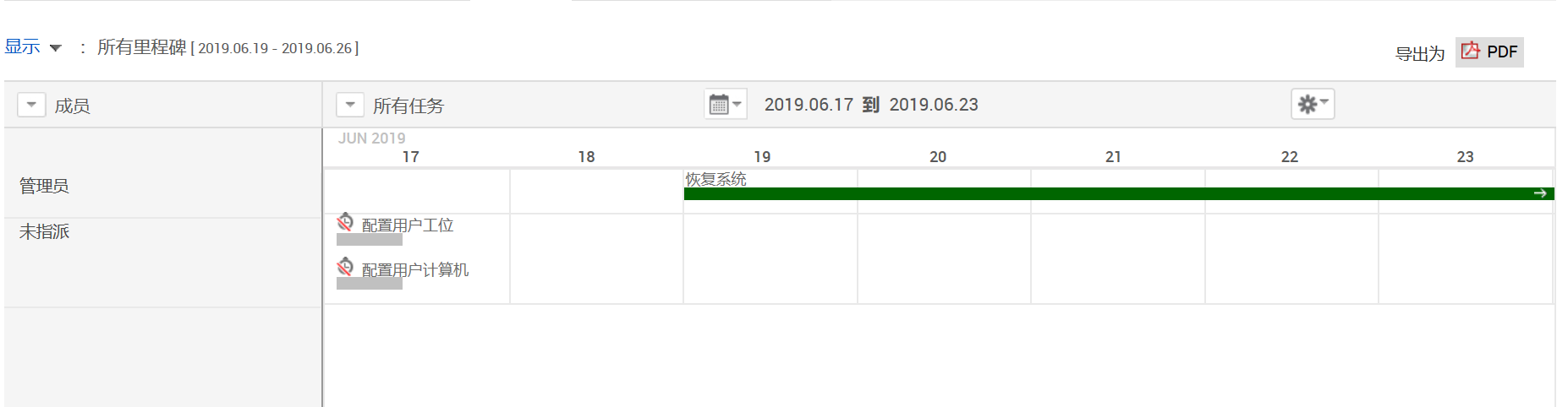 a. 甘特图行过滤可用的选项有:里程碑、任务、成员,通过它分别显示对应的甘特图
