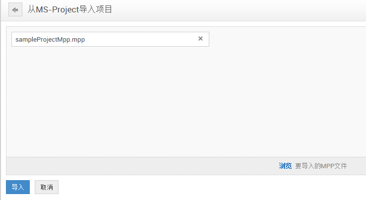 1.点击'导入MS Project'的链接,打开选择文件的页面。如下图: