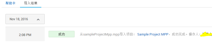 4. 导入结果可以点击 '导入结果'页签进行查看。被导入的项目可在项目列表视图中看到。