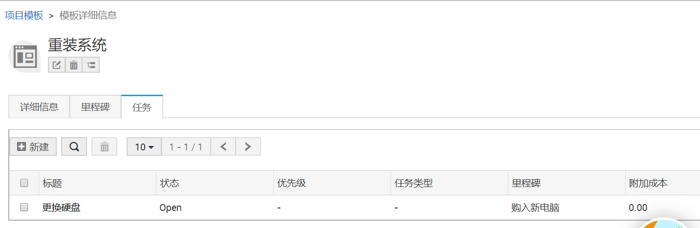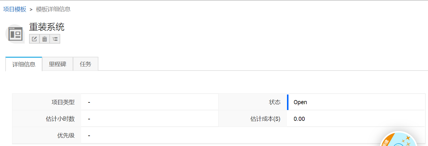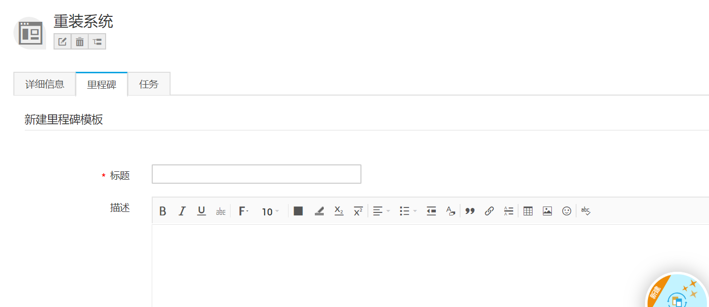 要创建里程碑单击新创建的项目模板并单击里程碑按钮。