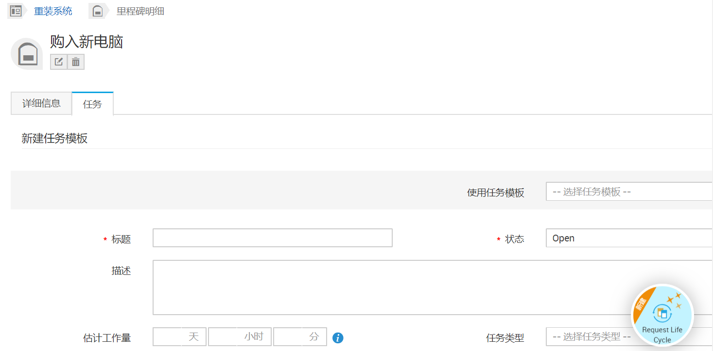 添加里程碑任务并定义它们的依赖关系。要添加里程碑任务,点击任务按钮在里程碑明细页面,然后填写所需的字段,创建一个新任务: