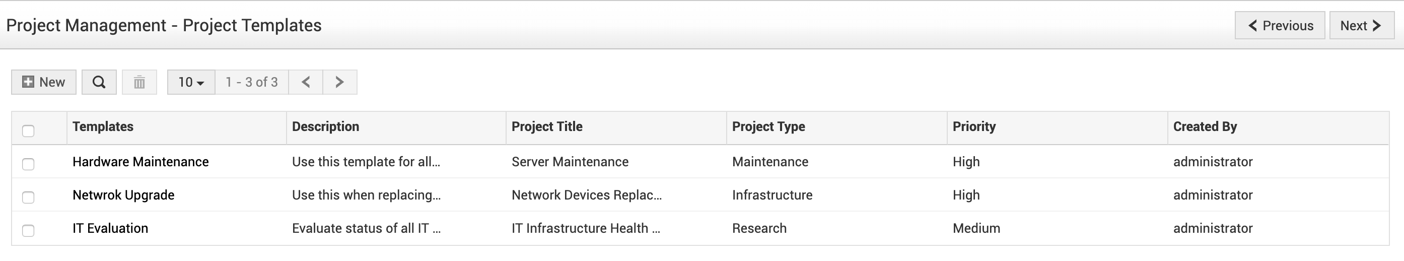 要列出所有已创建的模板,请单击管理选项卡下项目管理中的项目模板。在此列表视图中,您甚至可以删除已创建的任何项目模板。不过,这不会删除使用该模板创建的任何项目。