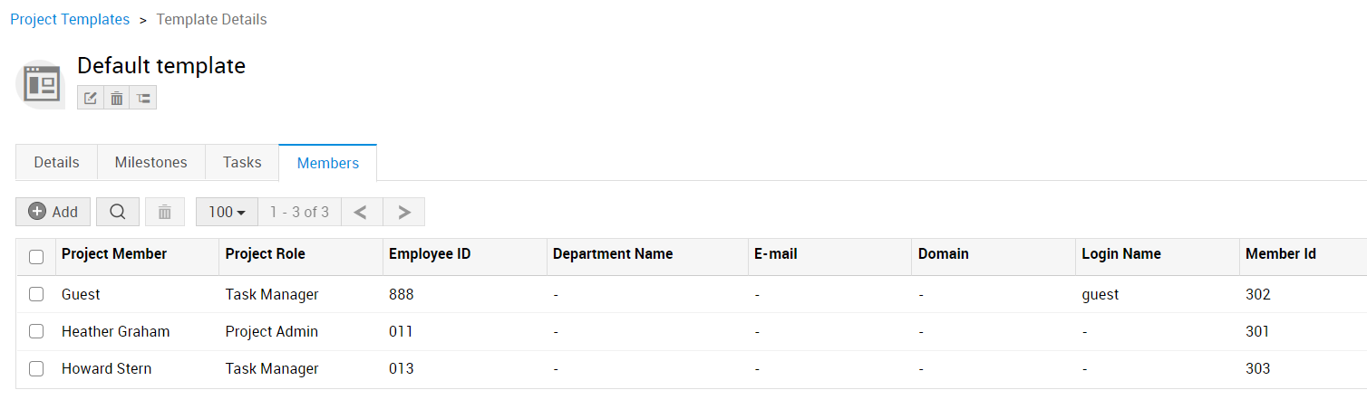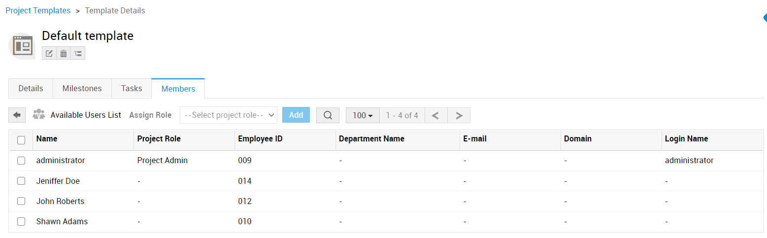 如果使用此模板创建项目,则模板“成员”选项卡下的成员将自动分配到该项目。