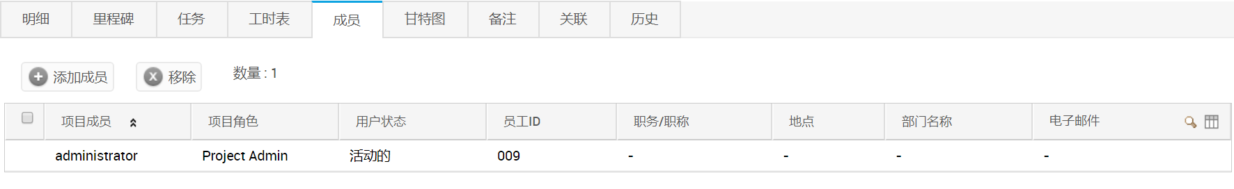 点击项目明细中的成员页签;