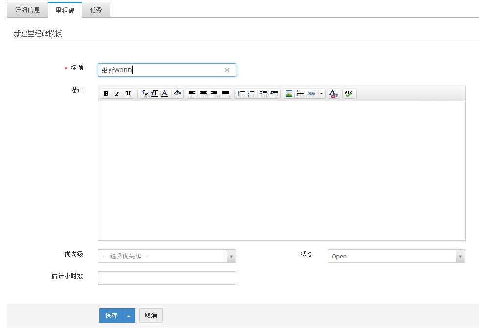 在这里,里程碑标题是必填字段。输入完成后点击保存按钮,保存该里程碑。