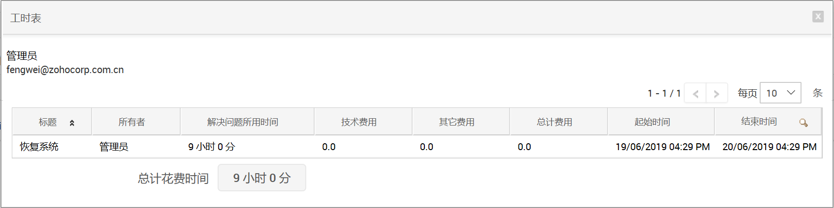 注意: 工时表中的信息来自不同任务的工作日志。您需要输入相应的任务工作日志,才会在工时表中显示