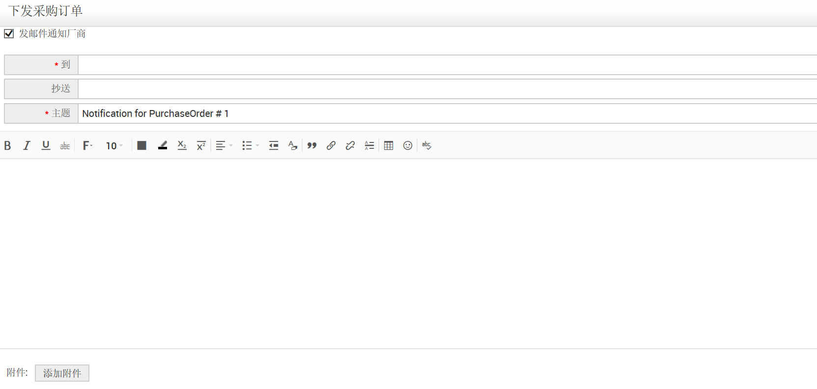 启用“发送邮件通知”复选框,如果您希望向供应商发送有关订购项目的邮件。
