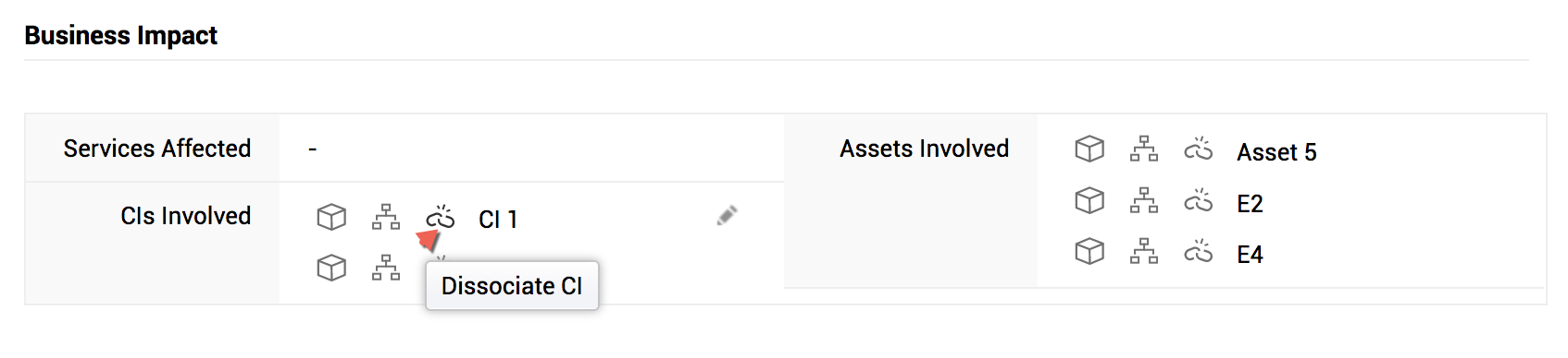 转到发布详情页面。在“业务影响”部分下,单击您要取消关联的服务/资产/CI 对应的