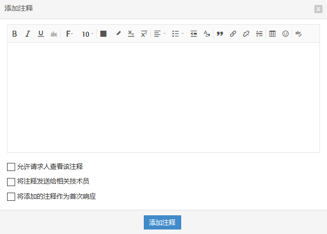 要在特定请求里添加例如技术信息等附加信息时,可以使用添加注释功能。还可以使用注释来更新请求的状态。