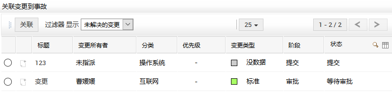 点击关联按钮,将对应的变更与该请求进行关联,同一个变更可以和不同的请求关联;