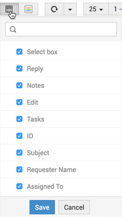 。这将打开可在列表视图中显示的可用列。当前可见的所有列,其旁边的复选框都将处于选中状态。