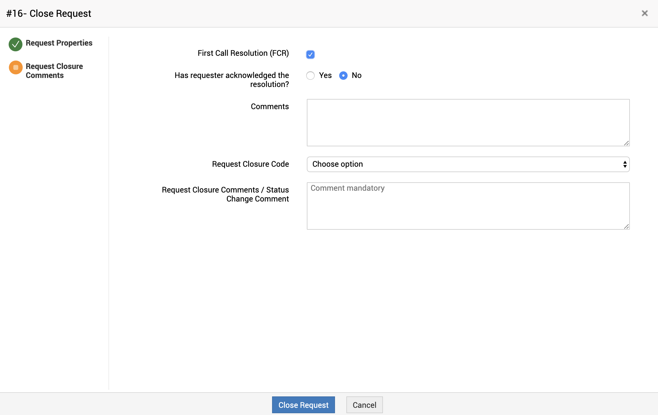 如果请求在未选中 FCR 复选框的情况下已被关闭,您可以在相应请求详情页面的右侧窗格中单击“标记 FCR”。