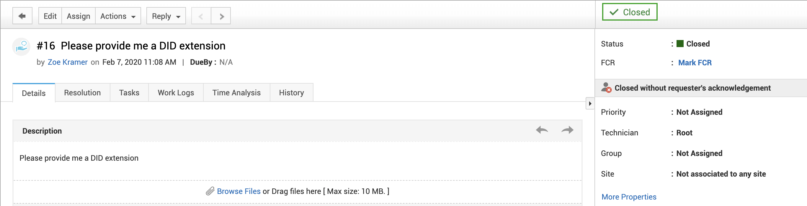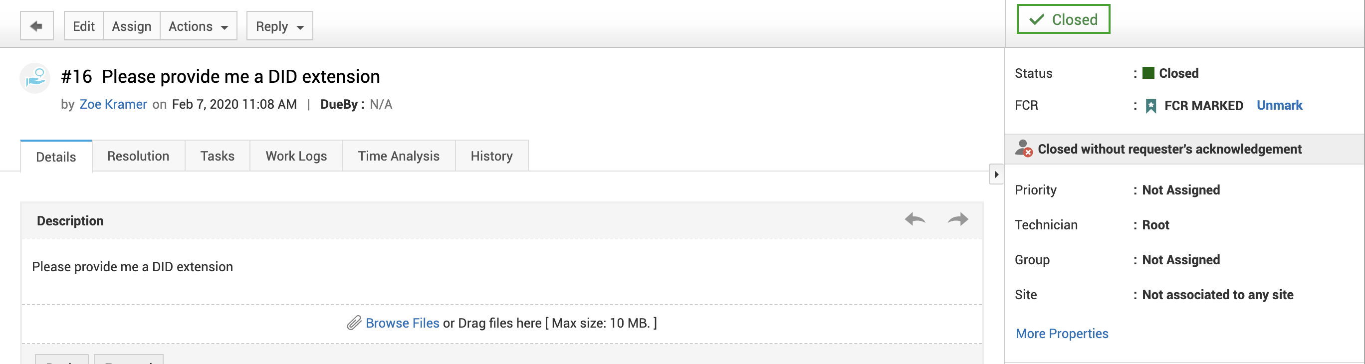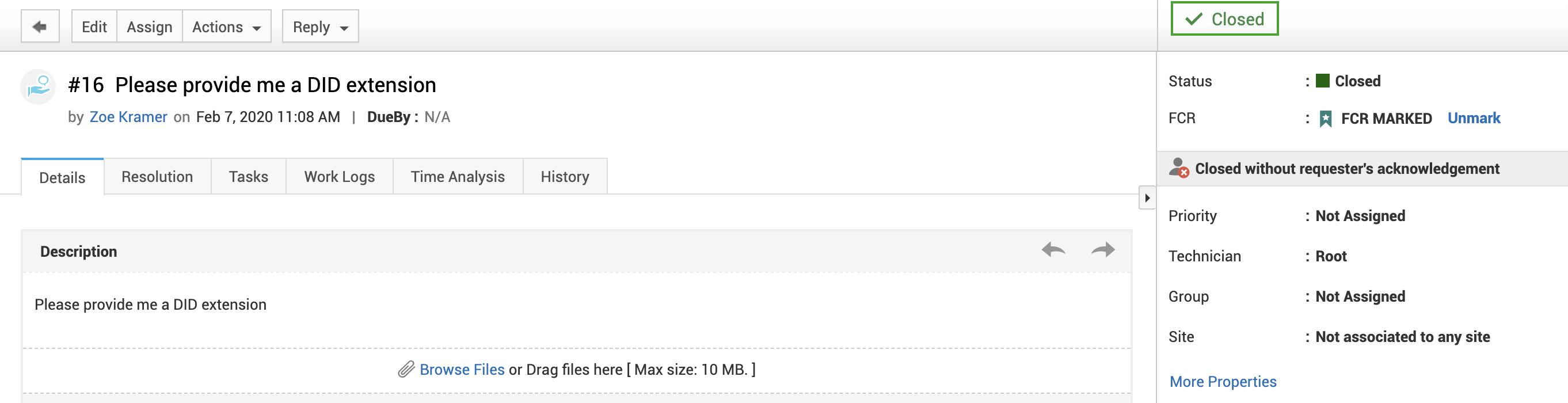 已关闭的请求现在将在请求详情页面中显示“FCR MARKED”图标,如下所示。