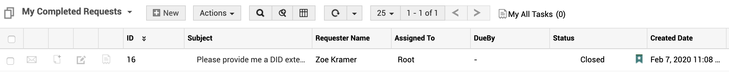 在请求列表视图页面中,已关闭的请求将如下所示显示。
