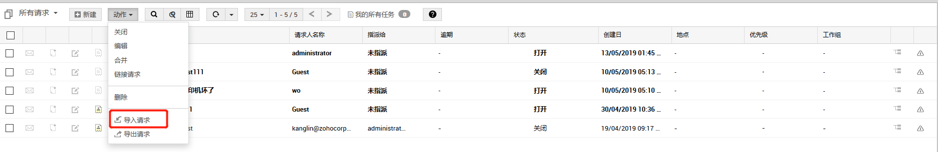 通过XLS文件批量导入请求。此选项对将请求从SDP应用程序或其他帮助台应用程序导入到别的SDP应用程序有很大帮助。