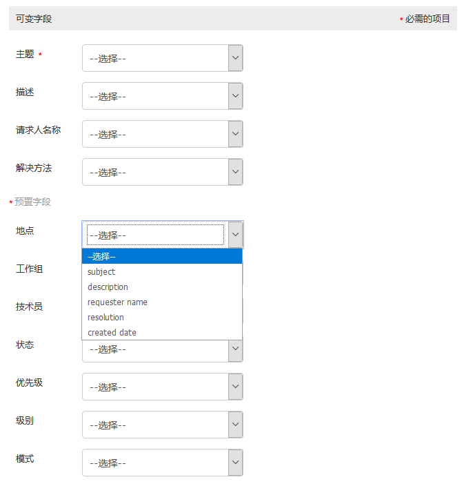 如果导入的请求包含ServiceDesk Plus中未配置的字段,那么这些字段会显示出来,技术员可以: