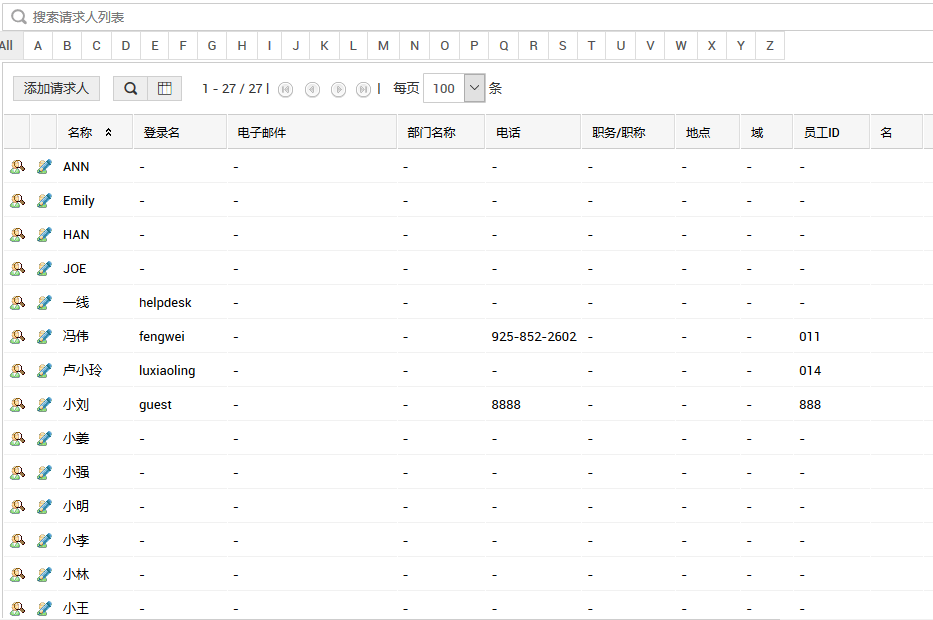 请求人打电话给帮助台的人员,描述请求内容,由帮助台人员代理输入服务请求到本系统中;
