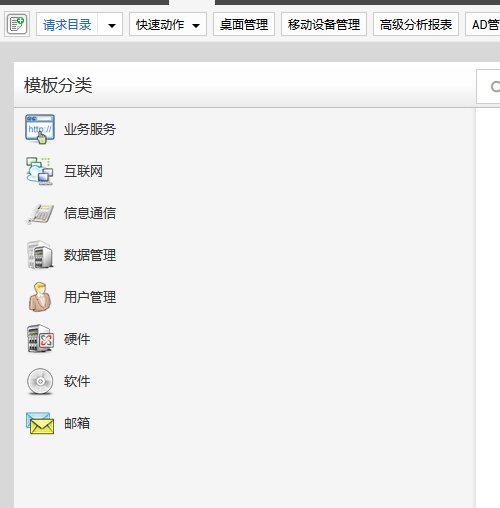 直接点击 请求目录(不是从下拉菜单中选择)可以查看模板类别及模板列表。如下图所示: