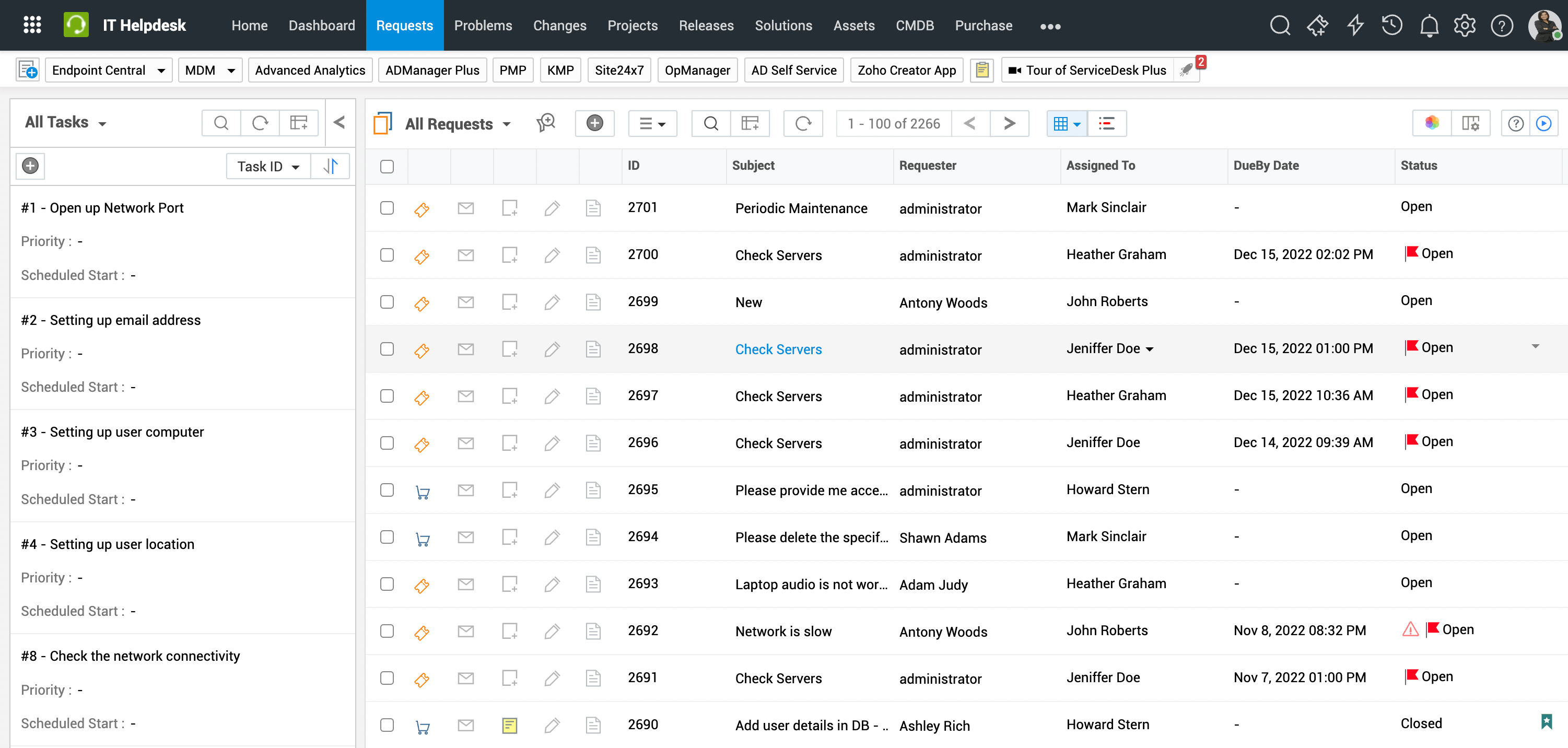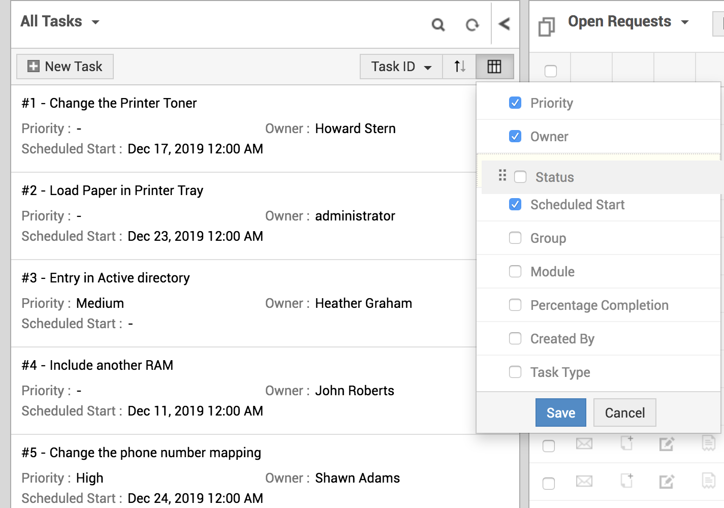 任务列表视图显示所有服务台任务。您可以在此页面创建、编辑或删除任务。