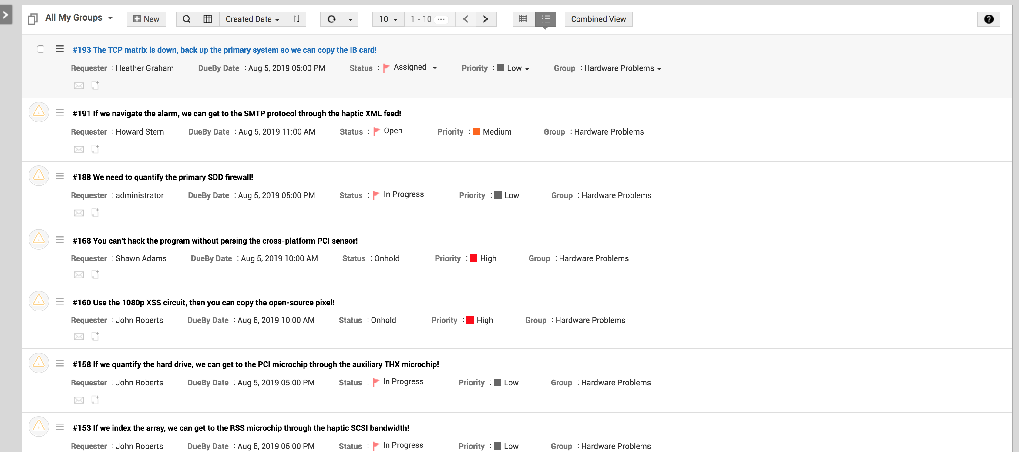 组合视图使您能够在同一页面上跟踪请求和任务。它看起来与经典视图类似,但筛选器和排序选项较少。