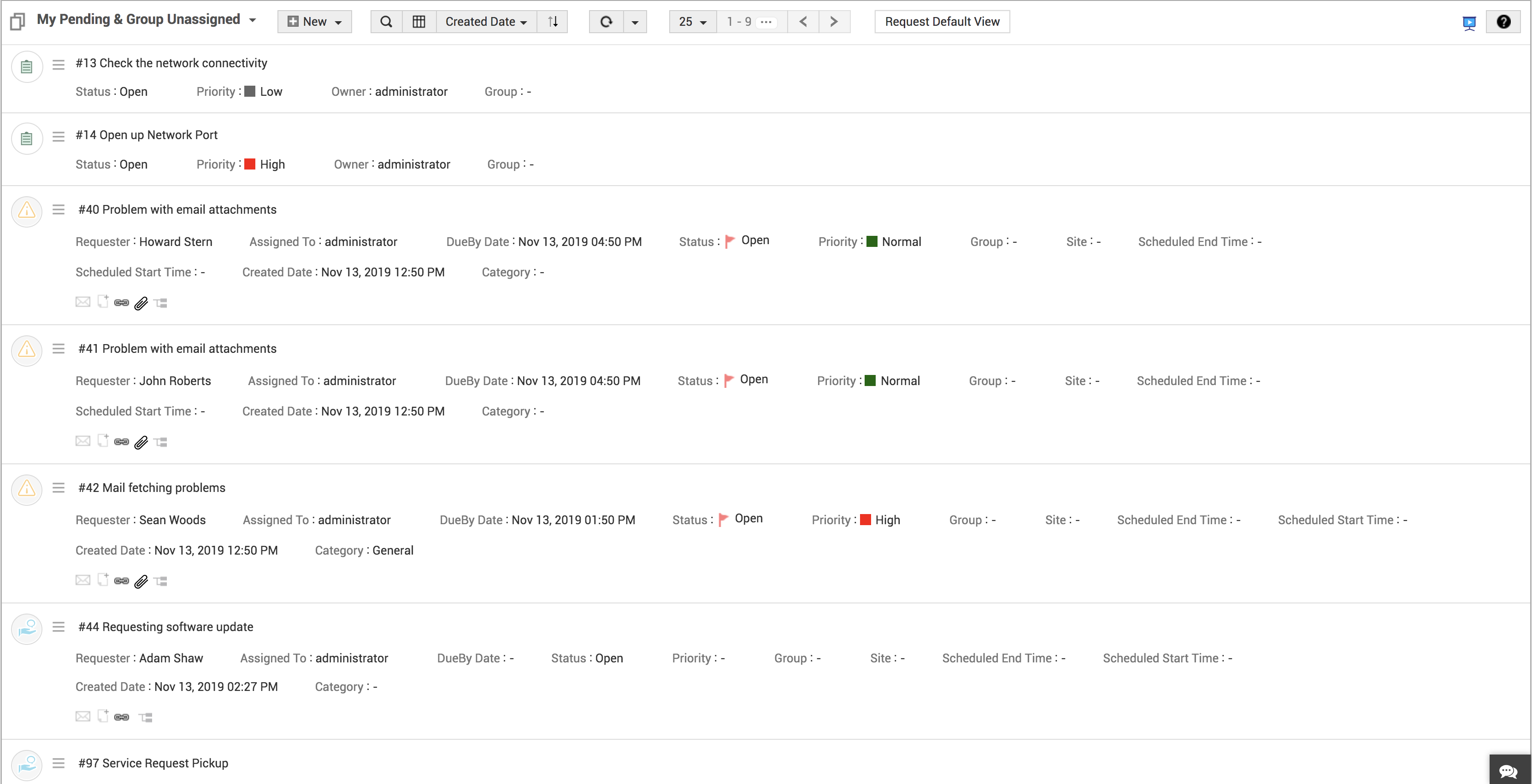 未分配的请求 | 未分配技术人员,且状态为待处理。 |