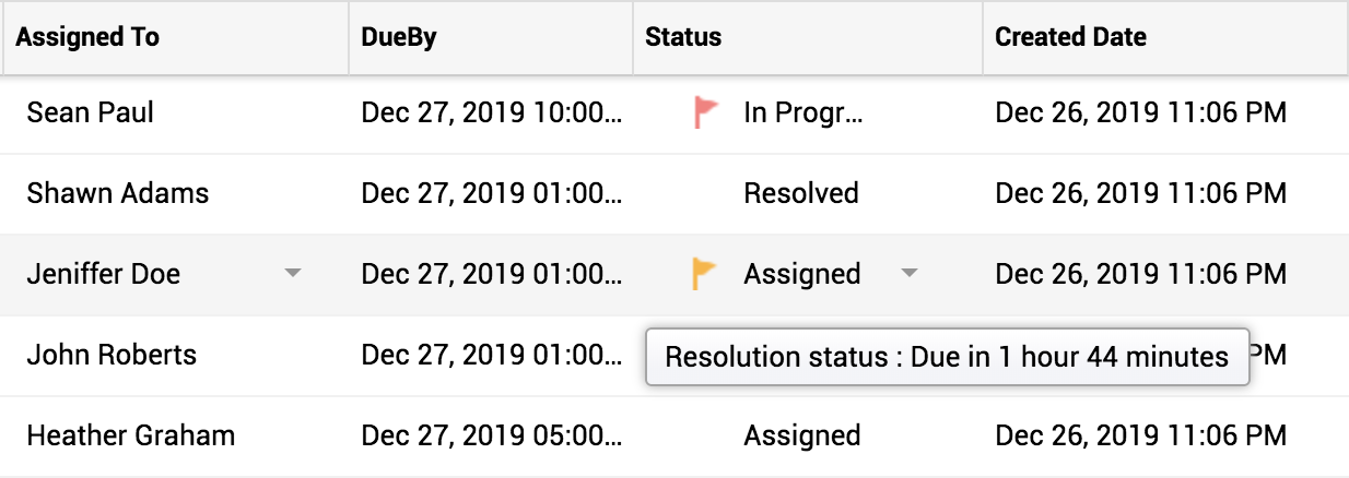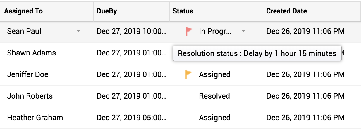 :当请求的 SLA 完成 70% 时,会显示黄色标记;将鼠标悬停其上时,会显示剩余时间,且不考虑非工作时间。