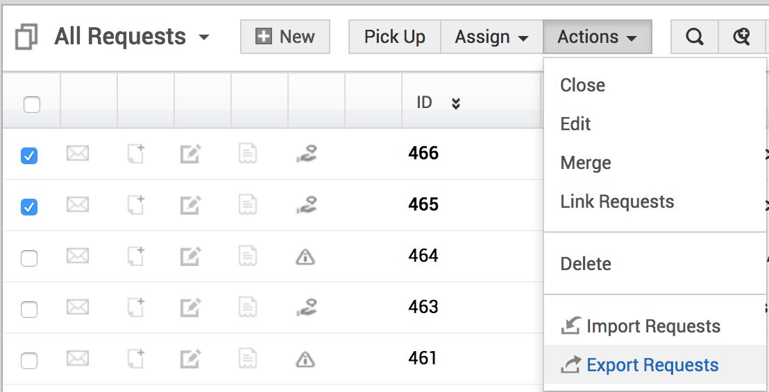 从列表中选择请求,转到 操作>导出请求。