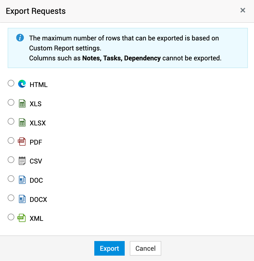 您可以从列表视图中导出请求。有关更多详细信息,单击此处。